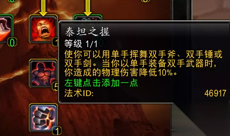 80级版本狂暴战的核心天赋是泰坦之握,使玩家可以双持双手斧、双手锤或双手剑,而在WLK怀旧服中玩家却发现泰坦之握有了新的变化。