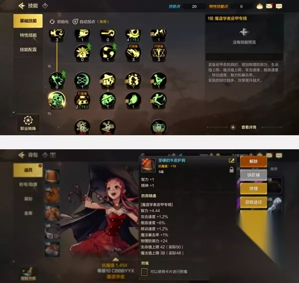 3、主动技能: 【点满级】:爆炎加热炉、魔道酸雨云、变异苍蝇拍、熔岩药瓶、旋转扫把、电鳗碰撞机、反重力装置、冰霜钻孔车、技艺融合。 【点1级】:改良魔法星弹、舒露露、替身草人、暗影斗篷。 4、特性技能: 推荐点冰霜钻孔车,伤害非常高的技能,追求频率可以选择旋转扫把也非常不错。