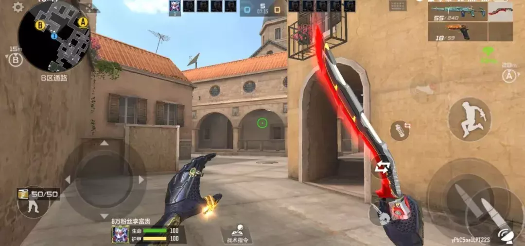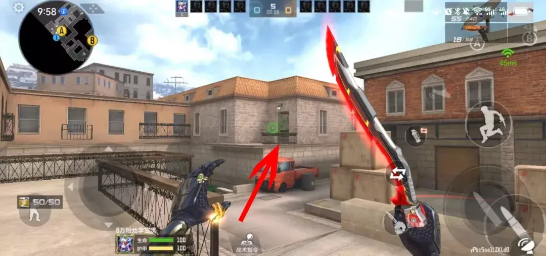其次是包点位置的变化,包点位置对面新增了二层楼梯,在图示位置可以提前架枪,即使小道失守,我们也能利用这个点位进行火力覆盖,提前枪来压制潜伏攻势,而且这个点位也能方便转点,需要灵活利用。