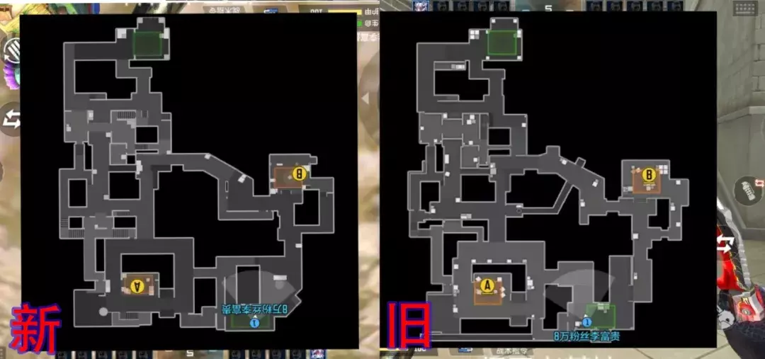 由于新版地图改动内容较多,火线姐将从A包点、B包点、衍生点位三个方面展开介绍,以便大家更轻松地阅读全文,下图是原图和新图缩略版小图,大家不妨了解一下~