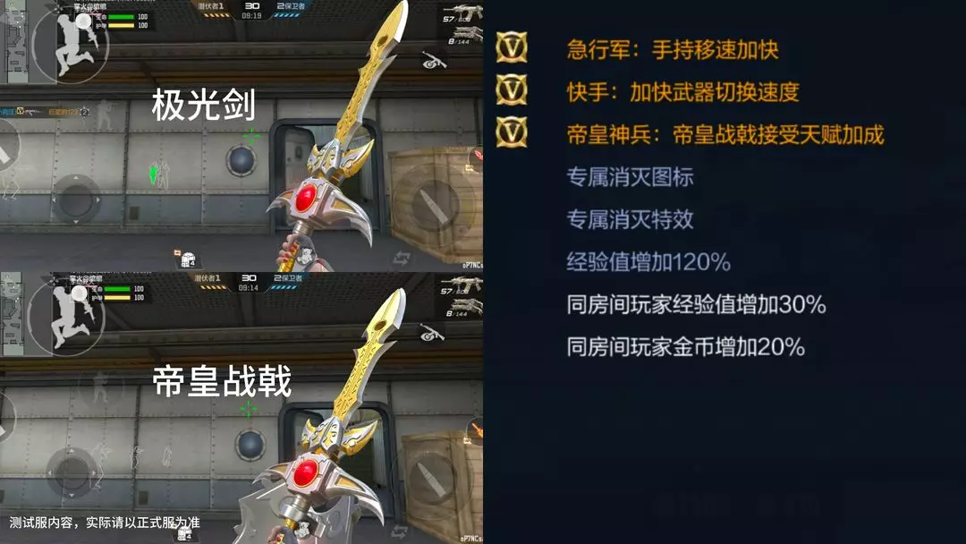 极光剑不仅拥有快手和急行军,还可以与双-管-猎-枪-极光盾组合,变形为帝皇战戟。怎么样,听起来是不是很炫酷!让我们一起攒攒钻石,期待帝皇铠甲夺宝在正式服的上线吧!