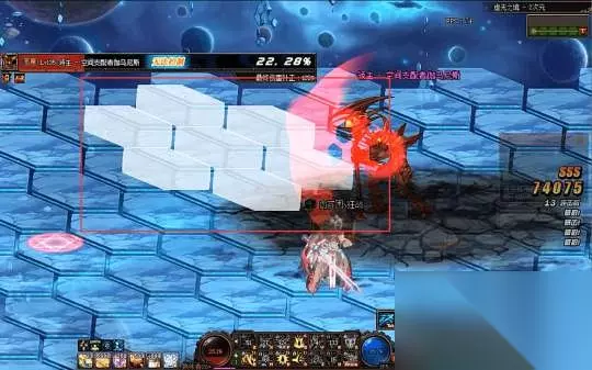 4图:地板会根据玩家的行走路径变白,之后产生冰柱,冰柱对玩家会造成一定伤害,对怪物会有冻结效果。