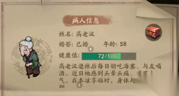 叫我大掌柜高老汉是药铺的病人之一,他的症状为头晕头痛、喘不上气,玩家需要根据提示来选择药方。接下来为大家带来叫我大掌柜高老汉药方配方攻略,一起来看看吧。