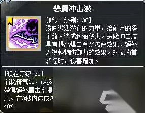 还有恶魔冲击波(该技能也是打BOSS的神技,自带100%的暴击率以及30%的无视)