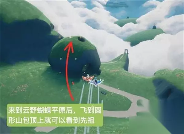 光遇蝴蝶结先祖位置在哪里,光遇游戏中有很多的玩法,其中很多人在游戏中不知道蝴蝶结先祖位置在哪里,下面跟着小编一起来看看吧,希望此文章能帮到你。 光遇蝴蝶结先祖位置在哪里 1:首先我们来到云野蝴蝶平原后面,我们飞到圆形的山包顶上,如图所示;