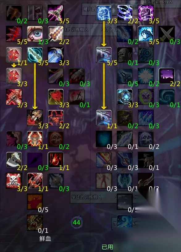 魔兽世界wlk国服快上线了,这次上线的版本是奥杜尔,很多玩家需要重新选择职业练号,比如血DK,那么魔兽世界wlk血DK天赋雕文怎么选?下面就给大家带来魔兽世界wlk血DK天赋雕文选择。 魔兽世界wlk血DK天赋雕文选择 双光环血坦 多出现于10人团队,一人独占两个光环,在团队BUFF补充上面占尽优势. 凋枯萎零强度不如深血,疾病持续时间偏短,需要更高熟练度. 深血坦克 多用于团队BUFF更齐全的25人团队,优点是更为稳固的群拉仇恨(CD也更短). 团队没有光环的时候就会很尴尬,比如10人团的时候.符文刃舞这个技能不插雕文的时候略显鸡肋. 双光天赋参考: 面对混伤/魔法BOSS