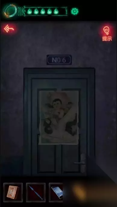 15、再继续看手机上六楼,这里可以注意一下窗外是有灯光的后续要仔细看,门上贴的是送子仙鹤。