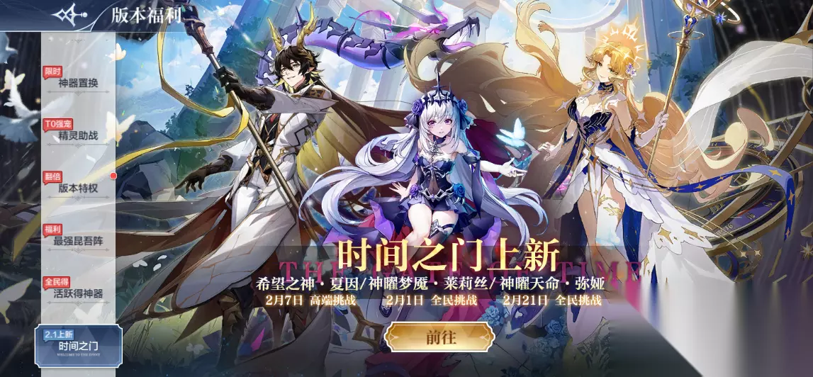 十七、【新年红包雨】恭贺新春,红包雨领好礼! 活动时间:1月28日5:00-2月14日5:00 活动内容: 每日领取不同类型的红包雨! 1.28:神唤券红包 1.29:神器币红包 1.30:灵纹经验红包 1.31:宠物红包 2.1:传说之魂红包 2.2:随机红色灵纹红包 2.3:神炼石红包 2.4:橙色星神红包 2.12:神器币红包 2.13:神唤券红包 2.14:传说之魂红包 十八、 【对决瑞兽】齐心协力打瑞兽! 活动时间:1月31日5:00-2月28日5:00 活动奖励:神曜真龙神器2选1*2、随机宠物*10、宠物品质经验*3万、金色星神碎片*100、神唤券*10 1、瑞兽在开放后剩余3天进入疲劳期,进入疲劳期时BOSS会变的虚弱难度下降 2、瑞兽需要组队挑战,邀请2位玩家一起共战,每个玩家只能上阵3只精灵,且站位固定一排。组队前需要设定好自己的预设阵容,组队成功后将默认上阵预设精灵阵容。 *注:在布阵阶段仍可改变精灵阵容 十九、【昆吾三色】集齐昆吾三色阵领好礼! 活动时间:1月24日5:00-2月28日5:00 活动内容:活动期间内成功集齐三色阵(神曜混元·真龙、烈焰王者·无烬、创始天璇·昆吾、神曜不朽·永恒圣龙、法度恒常·秩序、神曜信使·蜜西西)即可领取个人信息名片【创始天璇】;集齐并验证最强三色阵精灵满足战力,即可领取限定称号【樽酒对月】; 本周解锁精灵:神曜混元·真龙-1.24、烈焰王者·无烬-1.28、创始天璇·昆吾-1.31 二十、【竞技王者】排行榜开启,赢取个人信息背景! 活动时间:1月24日5:00-2月28日5:00 活动内容: 竞技王者玩法限时回归 1、三色昆吾阵集结!PVE&PVP赛场上阵三色阵精灵,可获buff&祝福加成! 2、参与竞技玩法可获竞技积分【竞技王者券】,累计进度可领取:神唤券*10、随机金色星神碎片*100、灵纹经验*50万、金币*100万 3、竞技积分获得排行榜开启,【创始天璇】个人信息背景奖励等你拿!(每周五凌晨五点重置) 二十一、【破阵天下】破阵天下buff重置,极限破阵! 活动时间:1月24日5:00-2月21日5:00 奖励预览:两周一期,共两期 橙色属性装备自选*2、神炼石*10、灵纹经验*100万、金币*100万 活动内容: 1、破阵天下每一个赛季持续两周,每个赛季都会有不同的主题 主题内容将会影响破阵效果 2、每一周都会按照时间分别开启【智慧场】、【勇气场】两个场次 3、两个场次都有对应不同等级的场次区分,每一周都有供冒险家们挑战不同的破阵阵容 4、根据两周的挑战情况,都可以领取对应场次达到X积分后的奖励内容;该奖励每两周重置 5、破阵天下中精灵无需养成,自动满战力 6、每个场次下积累的历史最高积分都将作为段位积分进行累计,也会将此积分进行排行榜排名 7、每个赛季结束后会重置累计的积分,冒险家们记得每周都来挑战看看哦~ 二十二、 【周年竞技大赛】竞技大赛回归!竞技得好礼 活动时间:1月24日5:00-2月28日5:00 活动奖励:随机宠物*10、宠物品质经验*4万、金色星神碎片*100、神炼石*10、灵纹经验*100万、橙色属性装备自选*2、金币*100万 活动内容: 1、比赛每天都会发放3张挑战券,玩家最多可以拥有5张挑战战券,消耗挑战券可开启一轮比赛。 2、玩家进入比赛后,进行5轮精灵挑选,重复精灵将无法同时上阵。 3、挑选完精灵后可匹配对手进行战斗,当完成8胜或3败后,将结结束本轮战斗,获得竞技币,竞技币将可在商店中兑换奖励。 4、战斗中玩家选择的精灵将拥有固定的养成配置。 5、玩家在失败2场后可以获得一个强力的BUFF:暴击率+1100%,仅生效一回合 6、在每一轮比赛中,玩家在完成1,3,5,7场战斗后,可以从3个强力的神力buff中选择一个,同种神力buff可叠加生效,神力buff无法带入到下一轮比赛。 7、每场战斗失败后,失败的一方拥有1次更换精灵的机会,可以从本次刷新的3只新精灵中选择1只进行替换。 8、排行榜前100名的可以获得称号、钻石以及金币奖励。 二十三、【王者竞技场】S2赛季春节版本开打! 活动时间:1月31日9:00开启 排名奖励: 战皇榜奖励:每轮比赛结算时(每周四22:00)根据排名所在的区间发放奖励,前5名为战皇,获得该战区的战皇称号,如:【时间战皇】。(本周至少进行1次挑战才能获得战皇榜奖励) 第1-5名:战皇称号(如【时间战皇】)、王者竞技币*1000 第6-100名:王者竞技币*750 第11-1000名:王者竞技币*500 第1001-5000名:王者竞技币*400 第5001-10000名:王者竞技币*300 第10001-50000名:王者竞技币*200 第50001-80000名:王者竞技币*100 第一期奖励预览:精灵皮肤自选*1(时光执事·诺亚、时光回溯·诺亚、机械大师阿瑞斯、名门侦探帝释天、沉睡花园帝释天、少年将军光明王、瞳皮肤、春水煎茶伊丽莎白、花之恋曲伊丽莎白、哆啦梦梦皮肤、热血梦梦皮肤、炼金梦梦皮肤、雅典娜皮肤、辛西娅皮肤、耶梦加得皮肤、归墟之神弥娅、星格皮肤、洛世琦皮肤、究Q皮、诺亚Q皮、诺雅Q皮、洛世琦Q皮、末炎Q皮) 服饰自选*1(游戏手柄、小黄鸭雪糕、飒影猎枪、无限未来浮沉炮)、自选神器箱子*1、随机橙+1装备*1、自选红色灵纹*5、随机宠物箱子*10、宠物品质药水*30000、灵纹经验*100万、潜能药水*10000、100万金币 第二期奖励预览:自选神器箱子*1、随机橙+1装备*1、自选红色灵纹*5、随机宠物箱子*10、宠物品质药水*30000、灵纹经验*100万、潜能药水*10000、100万金币 第三期奖励预览:自选神器箱子*1、随机橙+1装备*1、自选红色灵纹*5、随机宠物箱子*10、宠物品质药水*30000、灵纹经验*100万、潜能药水*10000、100万金币 二十四、 【精灵揭秘】揭
