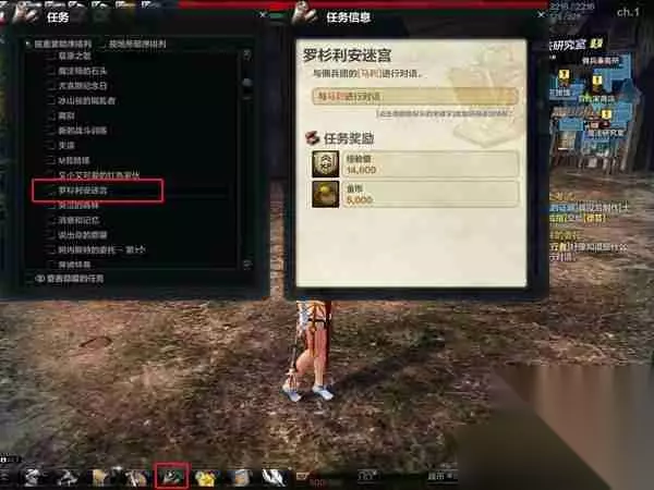 进入罗杉利安迷宫: 角色等级达到23级后,即可在支线任务中找到“罗杉利安迷宫”任务。(按“M”键查看支线任务列表) 与NPC“马利”和“凯雅拉”对话,获得进入迷宫的许可。 前往码头的综合码头乘船前往迷宫。