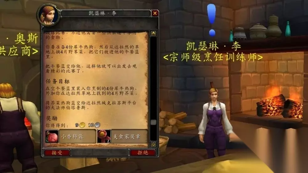 日常任务奖励的美食家奖章是一种新型货币,可以在边上找“德里克·奥斯”(联盟)或者“米森希”(部落)兑换大量烹饪食谱和北地香料。