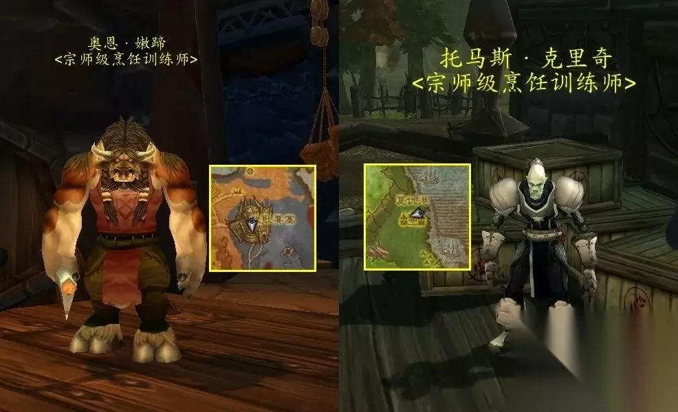 部落可以前往北风苔原的战歌要塞找“奥恩·嫩蹄”或者前往嚎风峡湾的复仇港找“托马斯·克里奇”,将烹饪专业提升至450点上限。