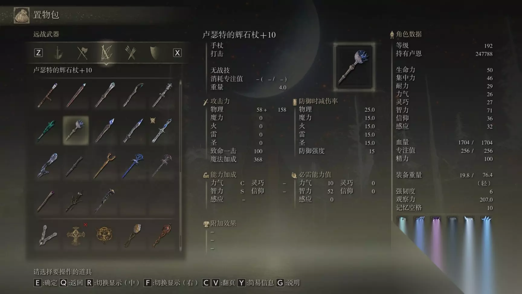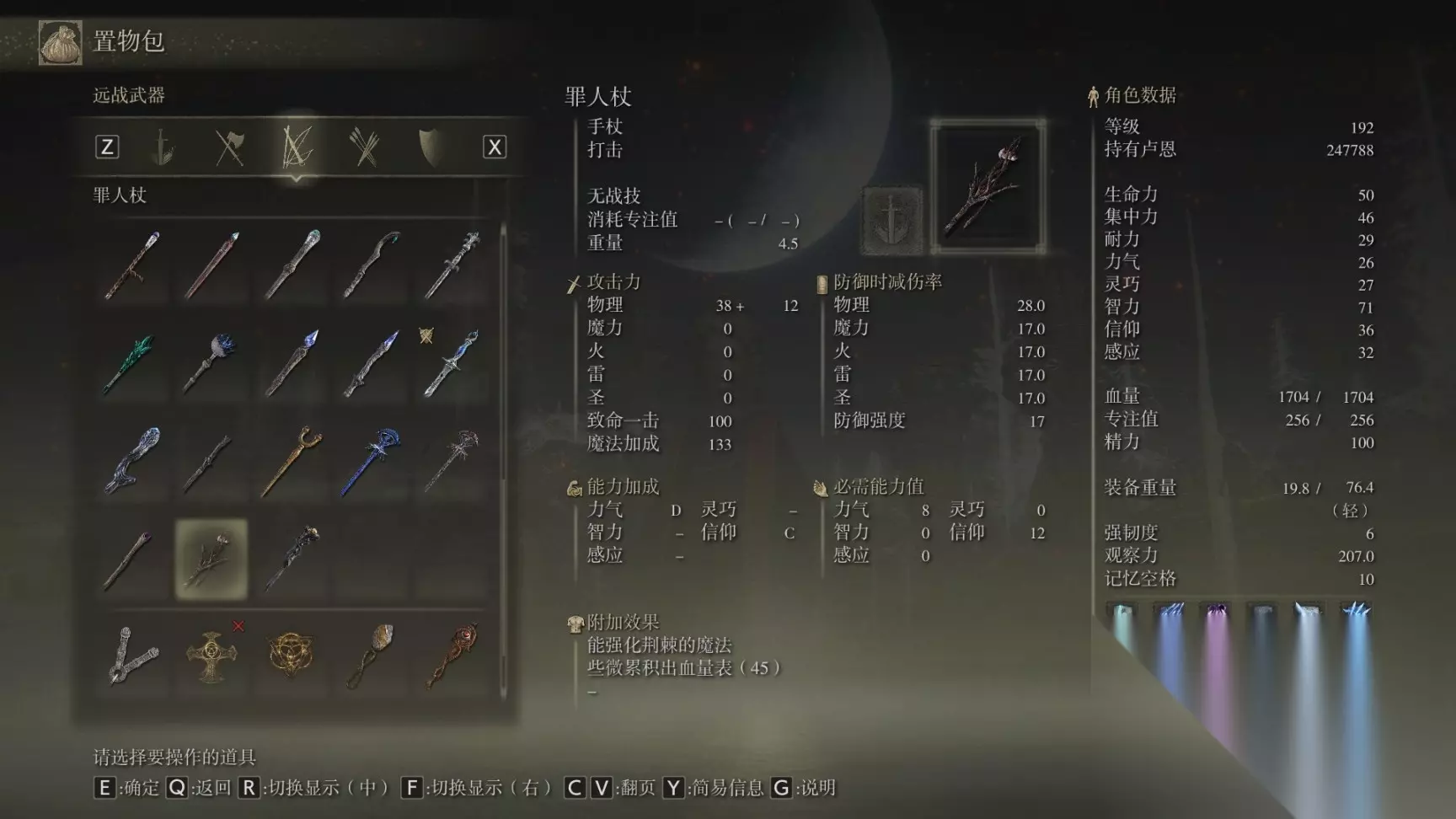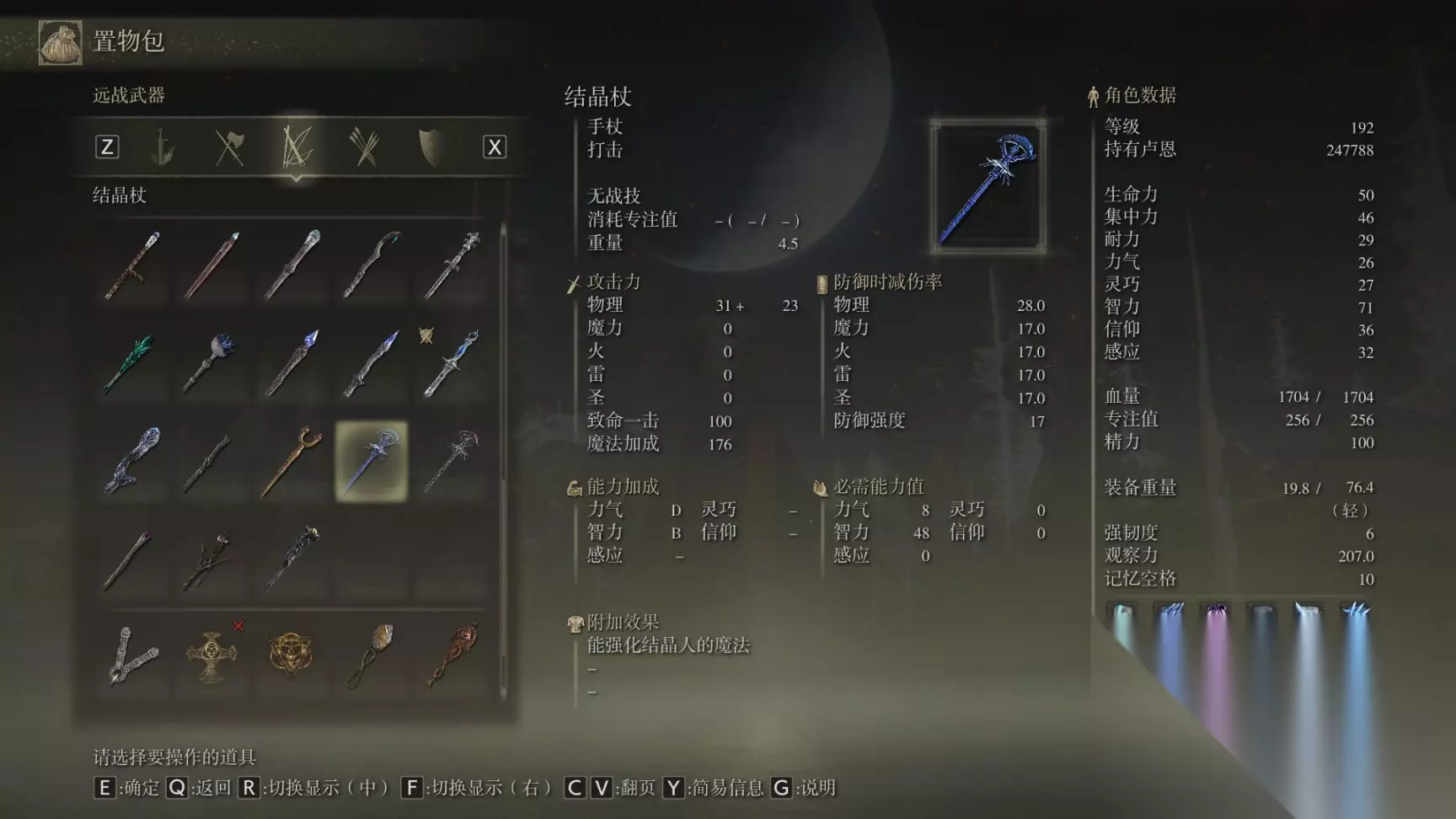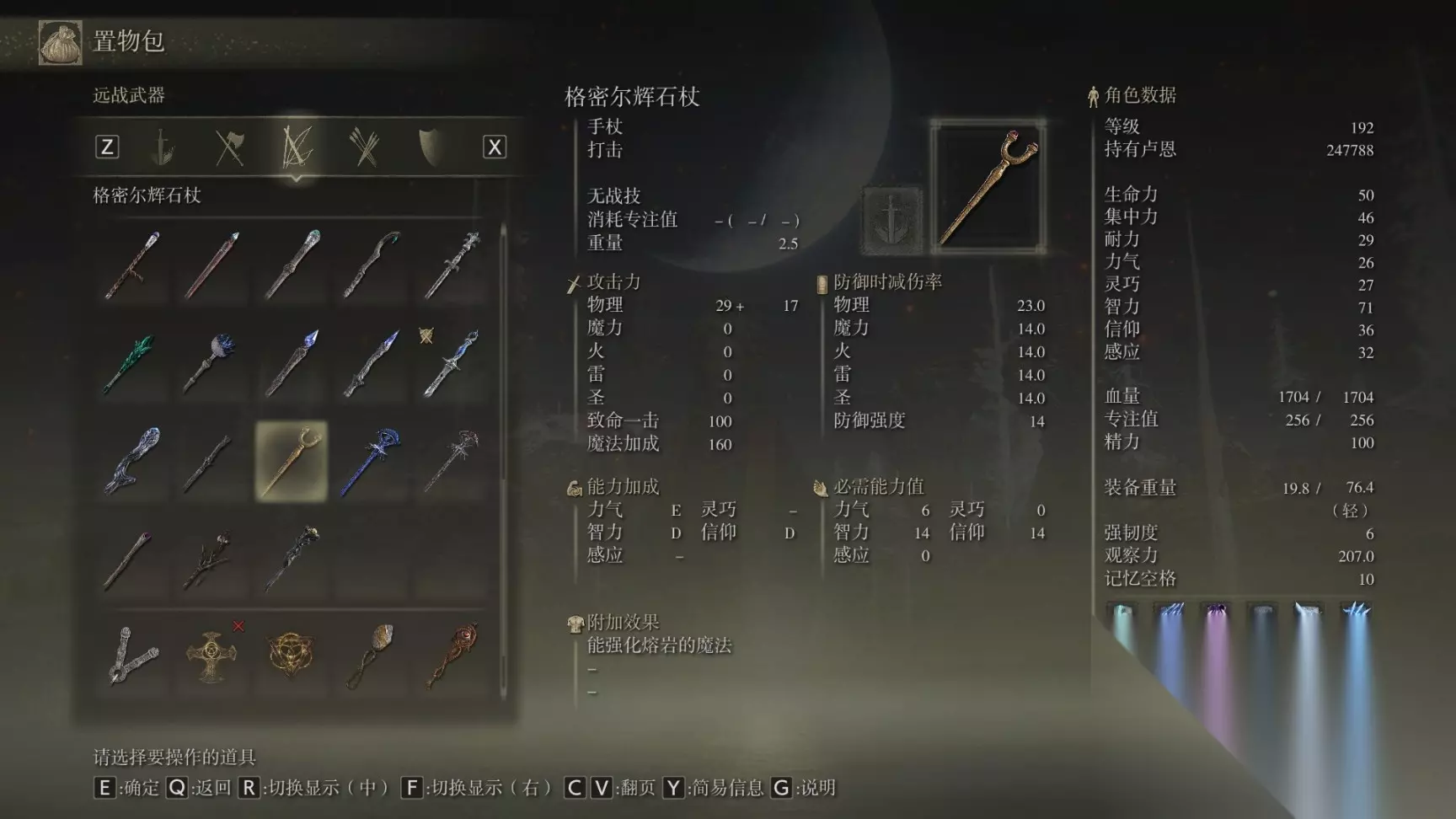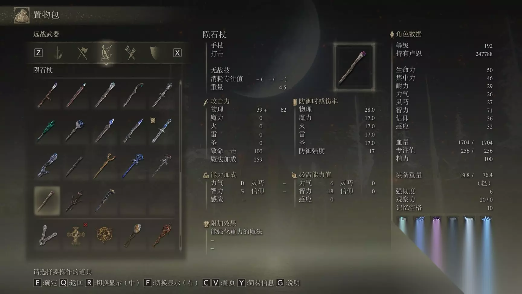 16 陨石杖 前期开荒逃课神器应该不会有人漏,就在开局传过去盖利德爱奥尼亚沼泽贤者镇废墟中