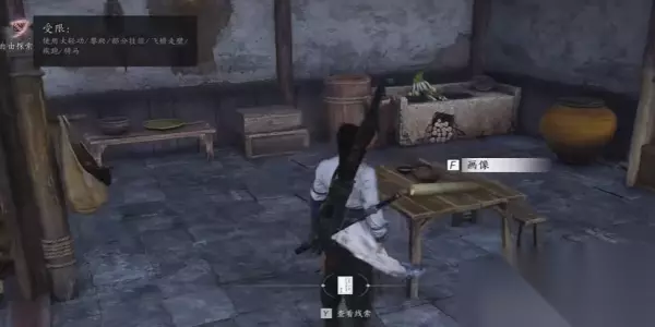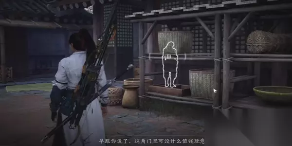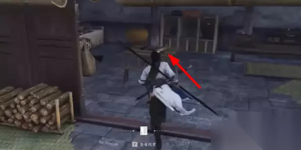 2、接着在这个位置就需要进行窃听一下,在往右边的房子桌子上就可以看到画卷。