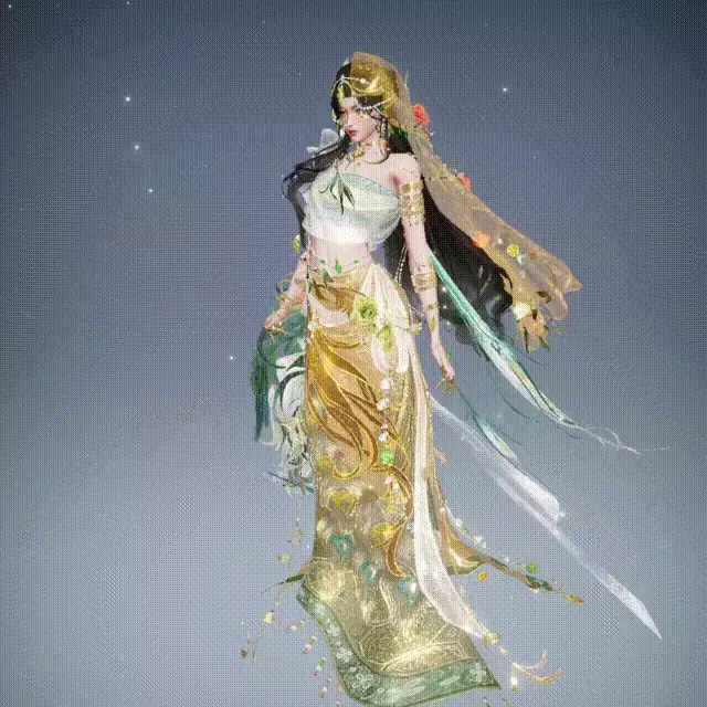 翠绿腰封缠绕金缕护甲。