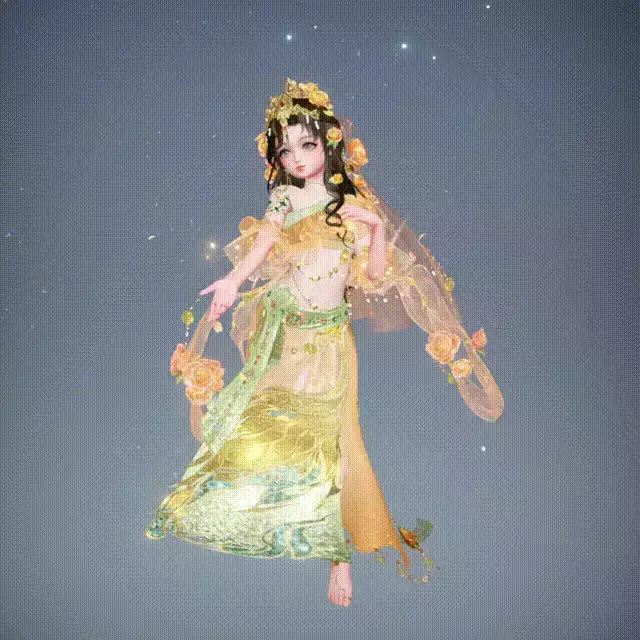 衣料采用浮光真丝与雾绡纱,搭配金饰在日光下泛珍珠光泽,在暗处流转萤火微芒。