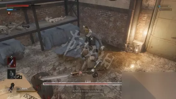在房间中会遇到一位追迹者,交谈后直接开打,这个小Boss行动较为敏捷,初见不熟悉节奏很有可能要交上一段时间的学费,但他比较容易打出昏沉条(处决),所以推荐使用一些大剑类双手武器来打。击败生还者后会获得他的服装和面具。