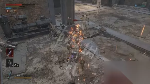 60%血时进二阶段,转阶段时Boss会往炉膛加料,要快速拉远(能跑多远跑多远)。这一阶段Boss会加入远程攻击招式,汽油弹会在地板上生成减速的油池(会被Boss的火焰攻击点燃)。躲开Boss的远程攻击后尽量贴身蹭刀。注意放大时赶紧跑。