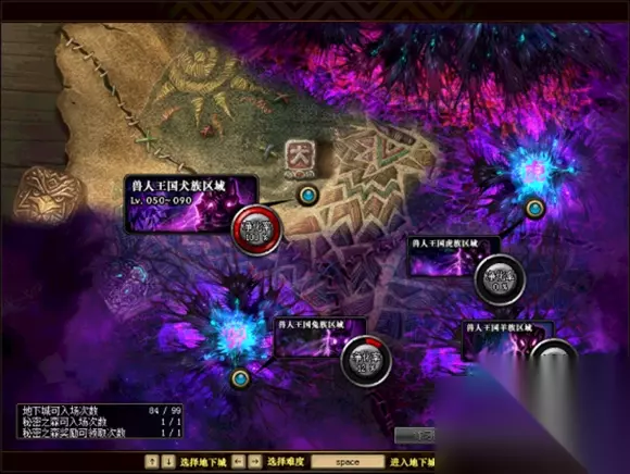 完成[兽人王国近邻]后,可开启四个地下城: [兽人王国犬族区域]、[兽人王国兔族区域]、[兽人王国羊族区域]及[兽人王国虎族区域]。 该地下城为单人地下城,不可组队进入,账号内共享该地下城进度。 (同时城镇会配合剧情场景环境变暗。)