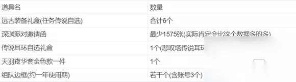 道具名数量远古装备礼盒(任务传说自选)合计6个深渊派对邀请函最少1575张(实际肯定会比这个数据多的多)传说耳环自选礼盒1个(悲叹塔传说耳环)天羽夜华套金色款一件1个组队边框(约一年使用期)若干个(含账号3个) 为了方便各位小伙伴肝肝肝,为大家详细介绍一下活动流程和一些tip: 在位于赛利亚房间右侧的活动NPC哈伯福处完成前置任务[可爱的汪星人]后可进入活动区域:兽人王国 (位于赛利亚房间内的哈伯福) 兽人王国一共由四位NPC组成: