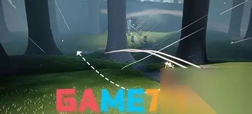 2.然后此时玩家在这个雨林第一张图,就是还没有进入雨林建筑的大门外边的小路上,往左边飞行。