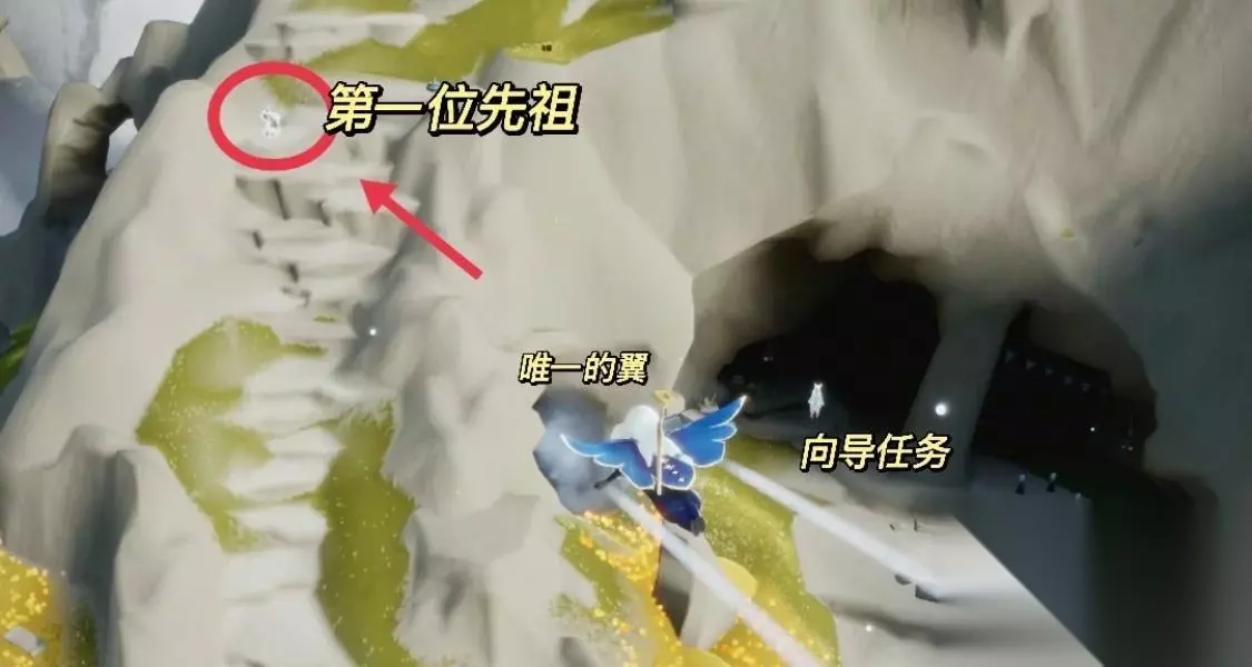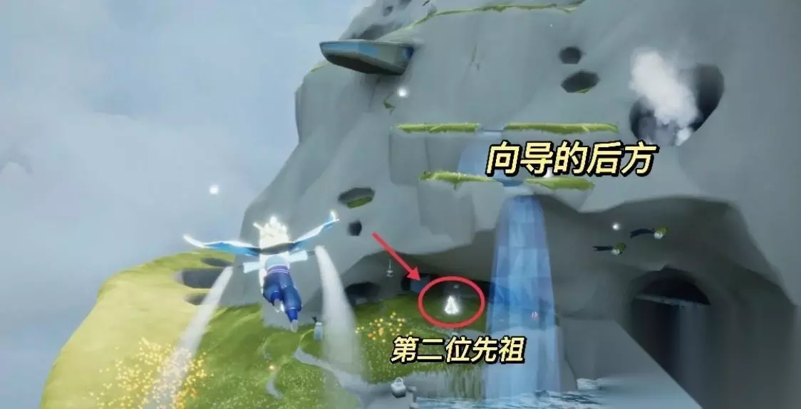 2、第二位先祖位置,在向导后面的山洞内,这位先祖是光之低语着,动作是叫声,收集方式为追随光影。