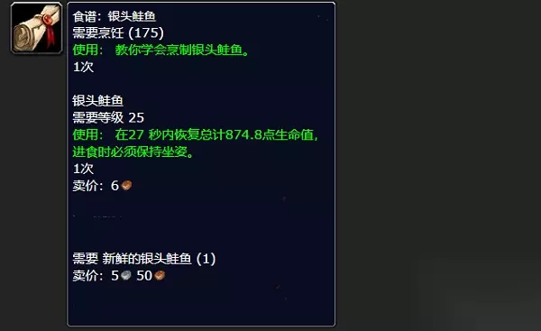 魔兽世界中我们可以制作银头鲜鱼料理,一次能够回复800多点生命值,非常好用,但是这道料理是需要利用配方,也就是食谱来学习的,而食谱是需要在商人处购买的。 魔兽世界银头鲜鱼配方哪里买 答:渔业相关的商人 目前游戏中有9个npc出售该配方,具体如下。