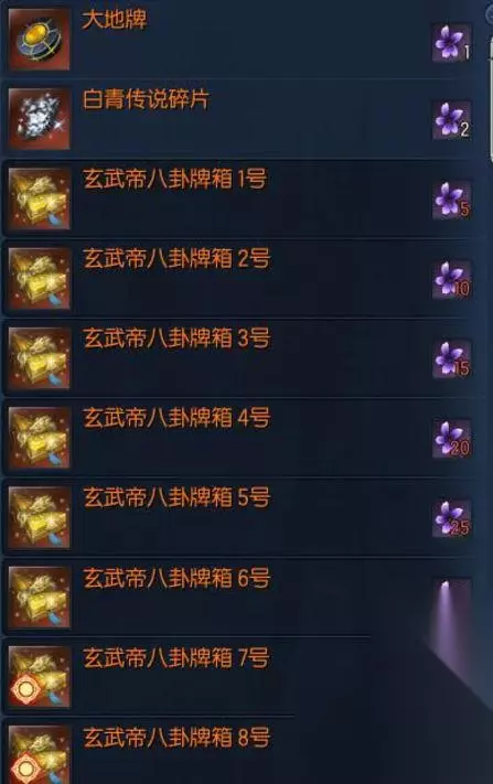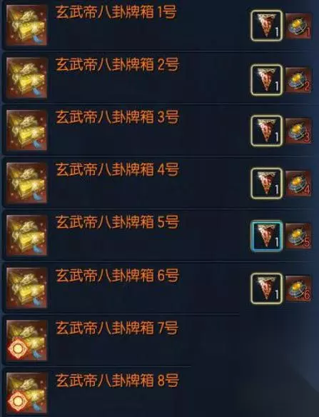 获得方式: 1.在24人副本【夜幕风之平原】击杀BOSS玄武,获得战利品箱子,可以有几率开出【玄武帝八卦箱】打开【玄武帝八卦箱】会出现对应职业的普通八卦牌,气功的是幻象八卦。在用【幻象八卦】加【常胜牌】,到传说哥处兑换。 2.第二种是兑换方式,在夜幕风之平原兑换商人处用【白青大地八卦牌】加【大地牌】兑换普通对应号码的【幻象八卦】,或者用月夜花来直接兑换。在用换号的【幻象八卦】兑换极限的,方法同上。也可以在飞龙工商里,用【南天国成长线币】兑换【玄武帝八卦箱】,不建议在飞龙工商里兑换,因为只能换1到5号的牌子。