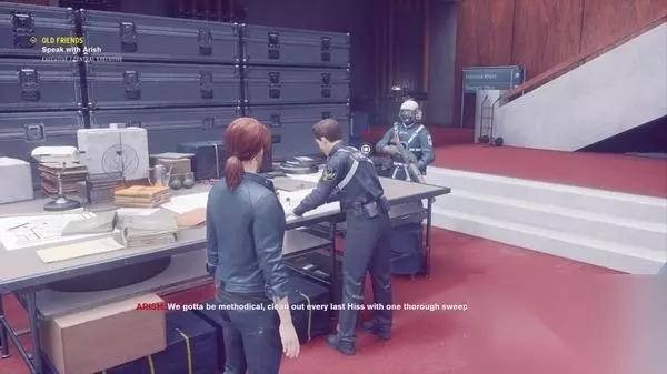 发布位置:【行政部】-【行政中心】 任务发布者:阿里什 解锁时间:在【第六章 我弟弟的看守人】末尾返回【行政部 委员会室】与【艾米莉】交谈时 首先在【行政中心】的控制点旁边找到NPC【阿里什】并与他交谈,触发支线任务【老朋友】。 我们需要做的就是帮他找到以前队友戴过的六个皮制弹药袋——通过击杀他被希斯腐化的6名队友。 打败希斯腐化的盖伊 第一个队友【盖伊】位于【维修部 阿特拉斯室】,直接快速传送到【阿特拉斯室】控制点即可,他就刷新在控制点旁边。 没什么特别的,他是比较普通的希斯腐化精英怪,血量比普通敌人稍厚,轻松击杀即可。