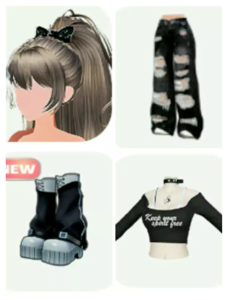喜欢穿着黑色露肩短款上衣,破洞牛仔裤,带着最喜欢的项圈