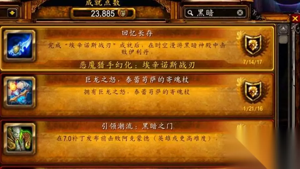 不过,这里有几个特别需要注意的地方: 首先,该副本一周刷新一次,千万不要先去刷黑暗神殿,要不会有CD,等辛辛苦苦组好了,进入FB才发现做不了就亏大了。其次,你必须先拥有光辉成就"埃辛诺斯战刃",才能获得"埃辛诺斯战刃"的幻化能力,最后,这个是福利了,一个账号下的任何职业,在通关黑暗神殿后,都可以解锁"埃辛诺斯战刃"的幻化功能,不需要一个个的去打。