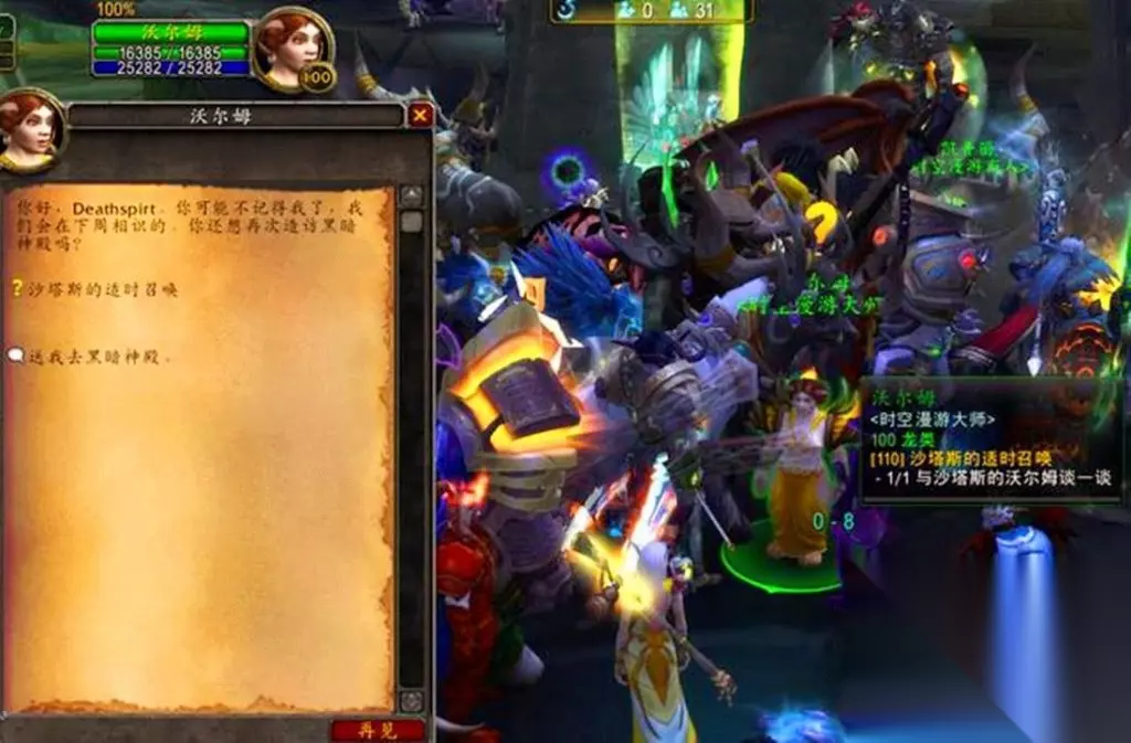 NPC就是图中的那个矮人,在哪里,交任务的人很多,反正哪里人多就往哪里去就对了,很轻易就能找到。在提交任务后,矮人NPC会给我们一个新的任务,就是干扰检测黑暗神殿,这里注意了,这个任务不用自己跑,直接点击"送我去黑暗神殿"即可进入黑暗神殿随机团队中,等待任务。当然也有很多人会在公共频道喊组,加入团队也是一个很快捷的方法。以上是获得战刃的全部过程。
