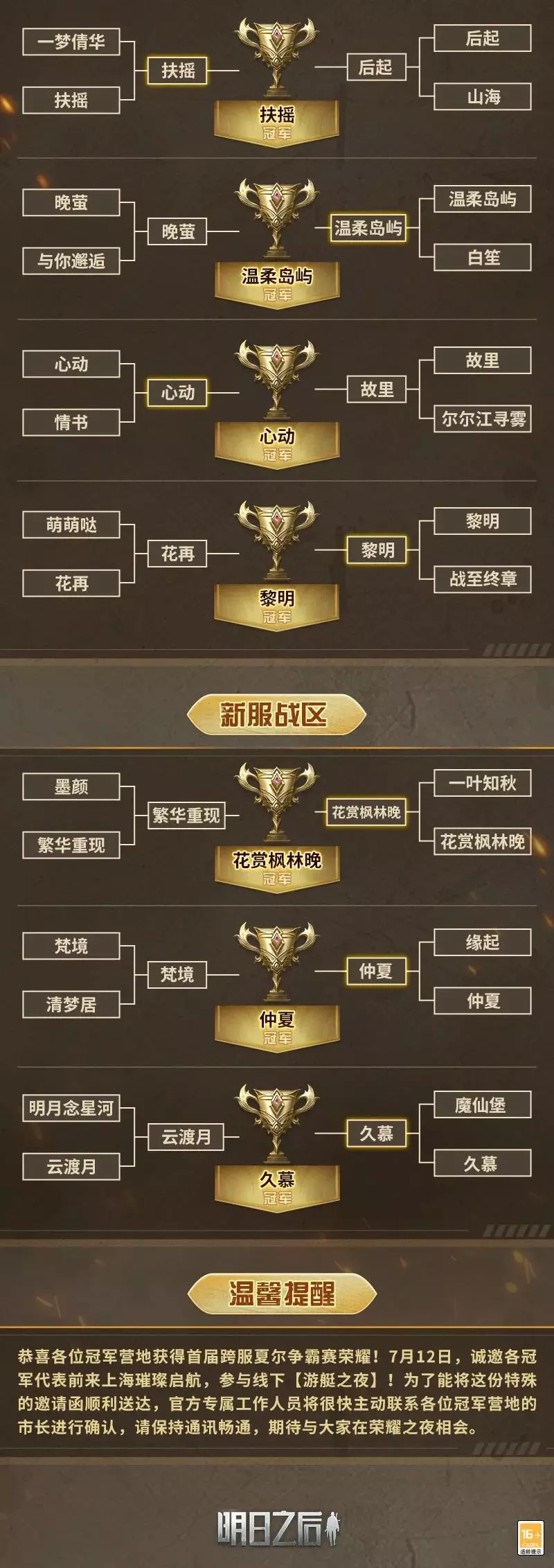 本次【游艇之夜】为首届跨服夏尔争霸赛冠军奖励加码,仅限冠军营地队伍参与,资格无法转让,届时工作人员会核对参与者的各项信息以确认资格,再次恭喜各个冠军营地获得首届荣耀!