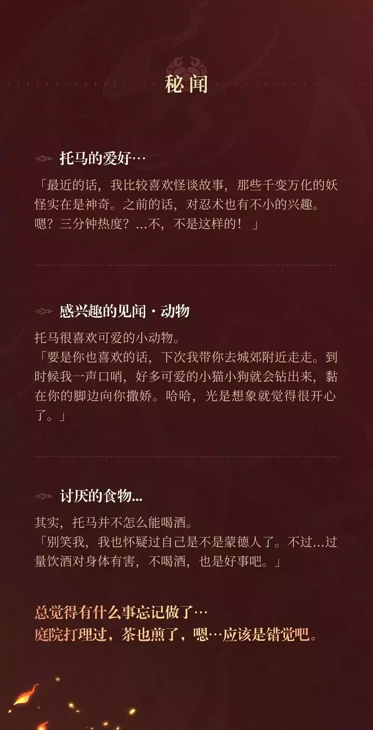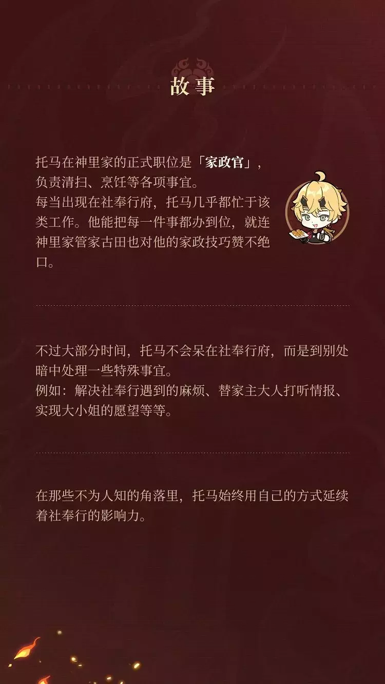 旅行者们心中是不是已经有答案了?没错,他就是神里家的「家政官」——托马,一起来了解更多关于他的故事吧~