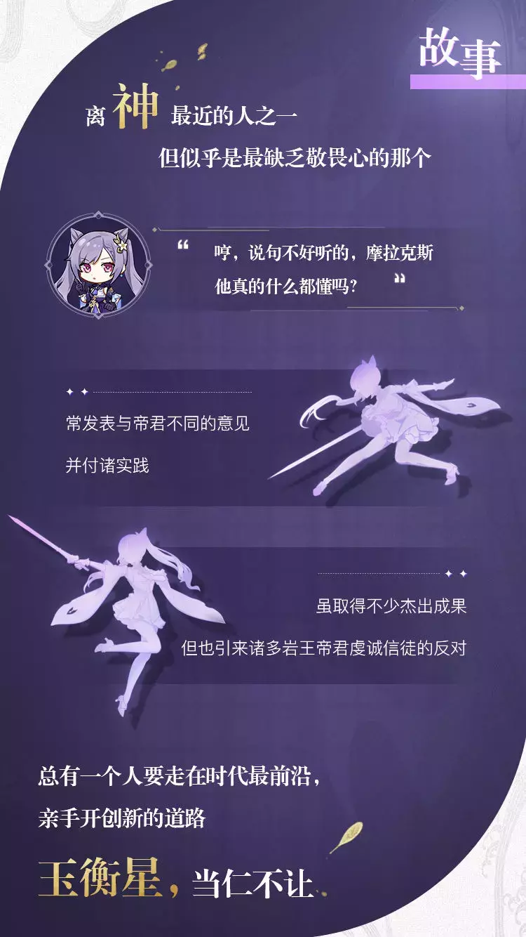 她常发表与帝君不同的意见,对「帝君一言而决的璃月」颇有微词。