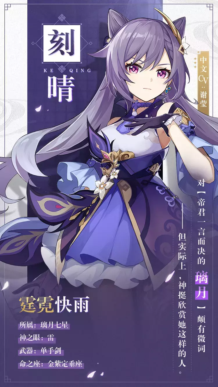 今天,给大家带来新角色是,所属璃月七星的刻晴!