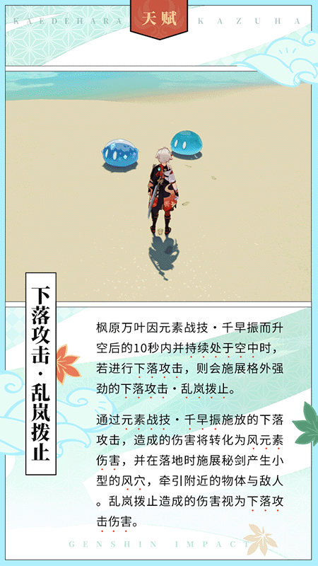「我的名字是枫原万叶,游历四方的浪人。」