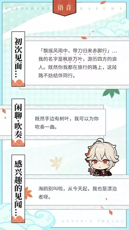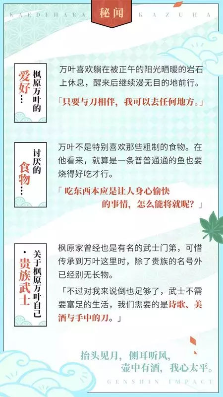 今天,带大家认识一位来自稻妻的浪人武士——枫原万叶。一起来看看吧~
