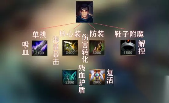 四、出装 亚索的装备方面第一件老白推荐破败,这件装备提供的吸血和攻速可以让亚索在对线期显得更为强势。后续两件我们选择无尽和绿叉把暴击率直接拉到100%,无尽之刃可以提高我们的暴击伤害,而绿叉不仅有攻速加成,救主灵刃的被动还可以提高亚索的生存能力。