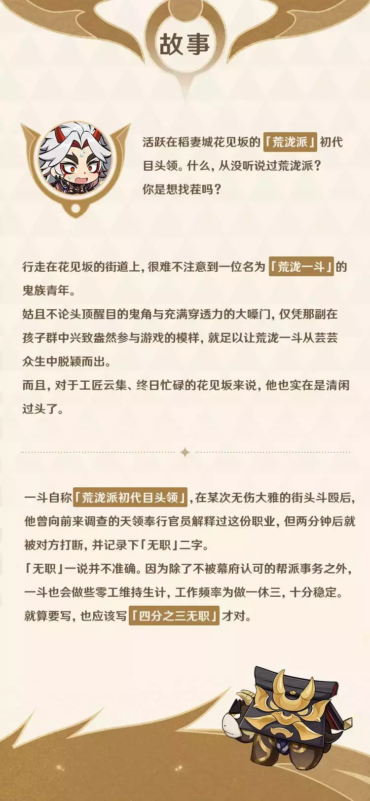 今天要介绍的这位主角,自称是「荒泷派初代目头领」。然而作为一名「头领」,他似乎有些…孩子气?!