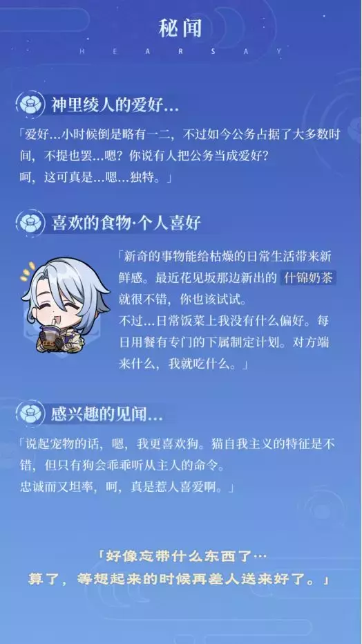 今天为大家介绍的是社奉行神里家年轻有为的现任家主——神里绫人。
