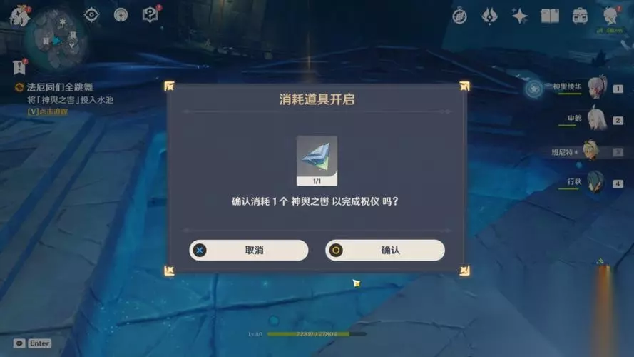 要想开启这个隐藏任务,玩家首先要找到登陆小岛的办法,一般来说有两种,一种是可以利用凯亚或者重云的小技能,不断在海面上造冰,最终走过去,这种方法的优点是没有任何消耗,但需要集中注意力,如果半路没接好技能或者跑过头,掉进水里就前功尽弃了,而另一种方法就是在摘星崖上直接飞过去,但是根据玩家的测试,从摘星崖到无名岛需要飞行九十秒左右,大概需要220体力,因此需要提前准备一些体力药或者降低飞行体力消耗的食物,比如北地烟熏鸡等。