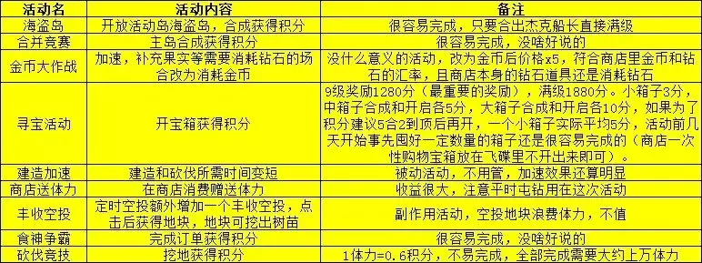 (1)主岛空投:小宝箱≈小水晶>金币>钻石>小麦>椰枣>其他树苗>铲子
