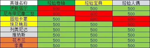奇观产出的不同种类的经验道具并没有高低等级之分(并不是说经验宝典就比经验卷轴等级高),但是不同的道具都有自己适配的英雄,适配英雄使用道具+600经验,非适配英雄使用道具+500经验,也是多20%收益,所以保持英雄等级平衡的前提下可以尽量喂适配英雄。具体英雄和道具的适配关系如下(此表持续更新):