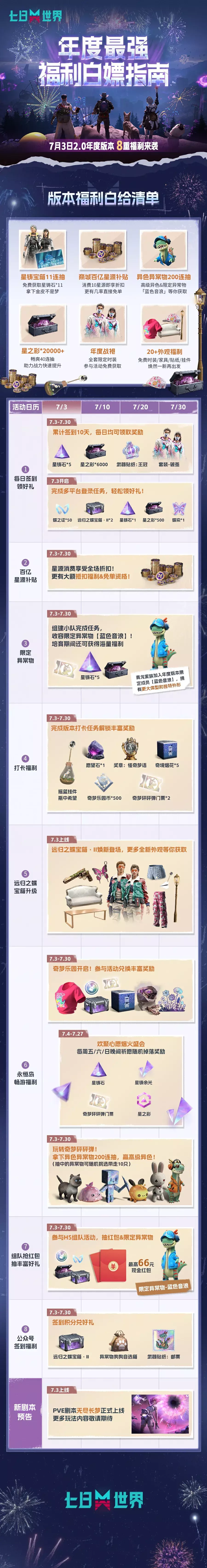 知道大家都很急,所以小七火速发来了这份超详细的【福利白嫖指南】!具体领取时间和活动形式都已清晰说明,建议长按保存,准时上线拿下全部奖励!