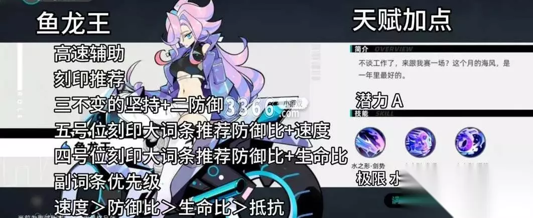 如果大家想让她的刻印更完美的话,这里的核心能力大家一定要了解,因为她的核心能力是在于近距离的单体输出,可以通过闪避反击来保持住自己的连击次数,所以在连击次数更高的同时,还会有更高的伤害加成,那么在持续输出能力上面,她连击越多就会越高,所以在机动性比较高的同时,生存能力也没有被削弱,这个角色她在武器的刻印选择上面,建议是选择白塔和轨道的结合,这种搭配的刻印才可以最大化她的输出能力。
