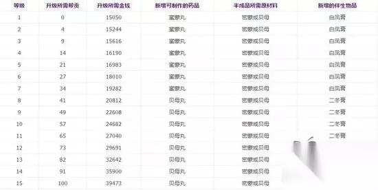 在倩女幽魂手游中,很多新手玩家都会选择升级生活技能,毕竟生活技能是平民玩家赚钱的主要途径。那么炼药这个生活技能升级的时候,需要多少帮贡呢?下面就一起来看一下炼药技能升级需要的花费。 炼药1-15级花费: