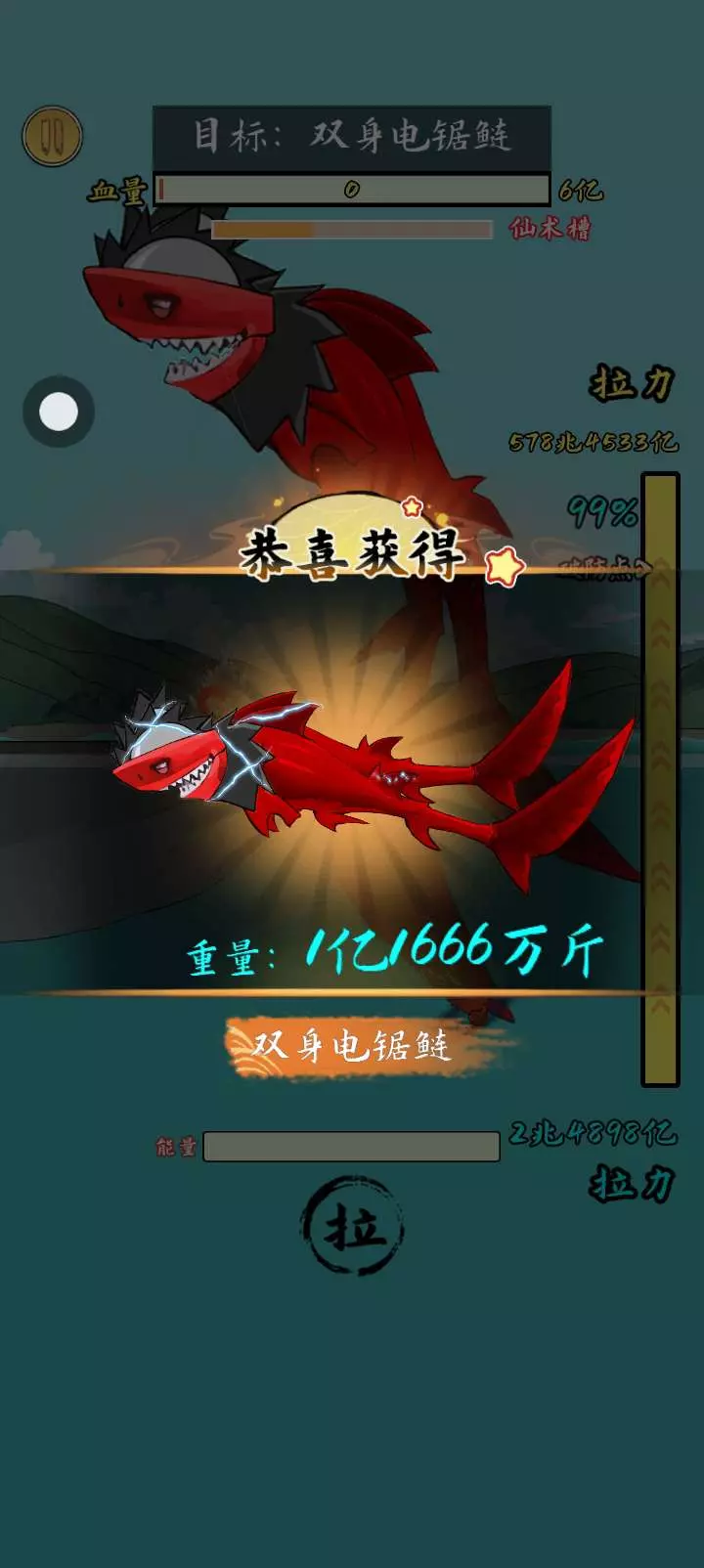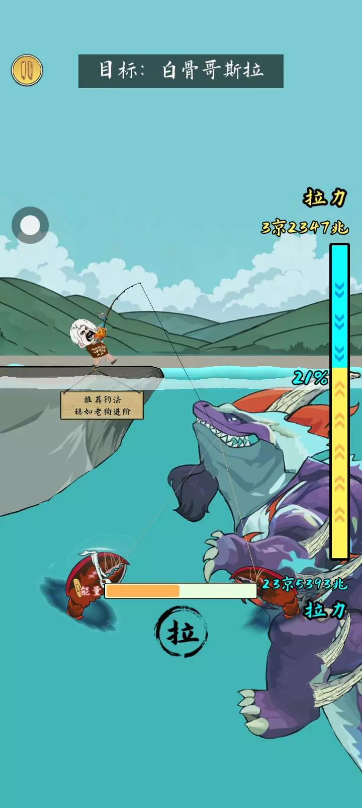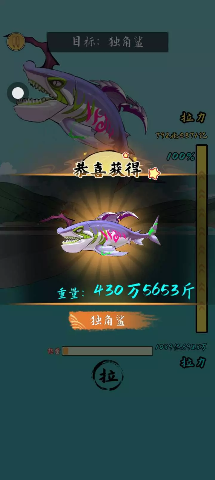 看我拼尽全力才钓到了这些鱼,这个人这个游戏主放,他根本没有去修闪退