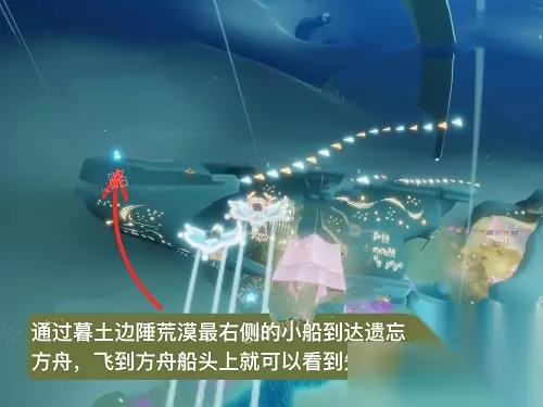 4、进入遗忘方舟图内后,一直往前登上方舟,来到船尾的位置就可以找到先祖。