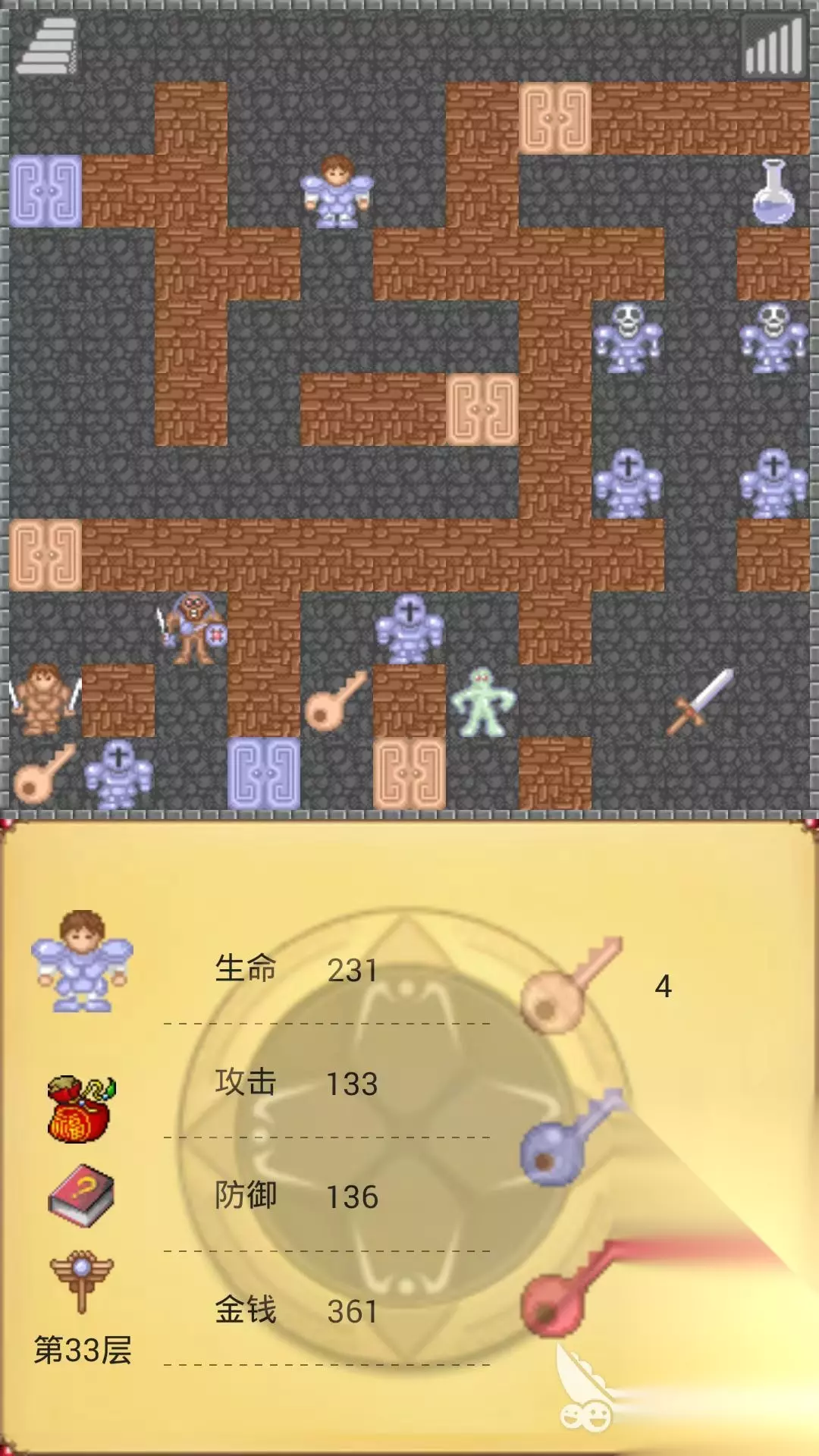 魔塔50层勇者的试炼这款游戏非常的经典,能够带给玩家非常烧脑的竞技乐趣,魔塔50层勇者的试炼这款游戏里面一共包含了50层,但是每一层里面的怪物都是不同的效果,并且随着关卡上升游戏难度也会不断地增加,最后将会挑战终极BOSS,很多玩家想要知道魔塔50层勇者的试炼37层怎么过,小编为玩家带来了魔塔50层勇者的试炼37层通关攻略。 魔塔50层勇者的试炼37层通关攻略: 1-10:不要浪费任何蓝色9.7,用黄色绕道开门。 11-20:追求极限只能加2次攻击,否则加3次攻击,先拿银剑,再拿银盾和地平面,清除红宝石,拿十字架,然后然后直接去boss,等到32层加完点回来拿其他宝石魔塔勇者试炼攻略,去20层右边的血瓶,在最终boss之前拿到。 31-40:加2攻4防,回去拿低级宝石,先绕路拿到33骑士剑,38楼拿到骑士盾魔塔勇者试炼攻略,使用章鱼怪铁镐破坏蓝宝石后面的墙,出去,有骑士守卫的宝石都被先带走,40层的红色门用隐藏的钥匙在34层打开。