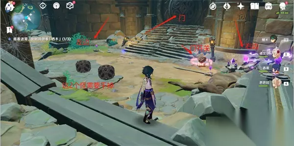 一、千来神祠 2、首先千来神祠,这个比较简单,主要是大家要找到2个小孩(阿瑠)的位置,如下图标记的地方; 3、个人小地图自动显示“雷瞳”的位置,我在这里绕了好久,进去看不清,不是掉坑里,就是掉水里,还有被怪物追着打;